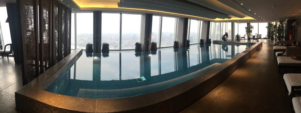 When staying at the hotel you can make use of the gym and the swimming pool. The pool is based on the 52nd floor and is ultra-unique, being the highest in Europe. We went on a weekday and it was really quiet at the hotel so we were able to have the pool to ourselves the whole time!