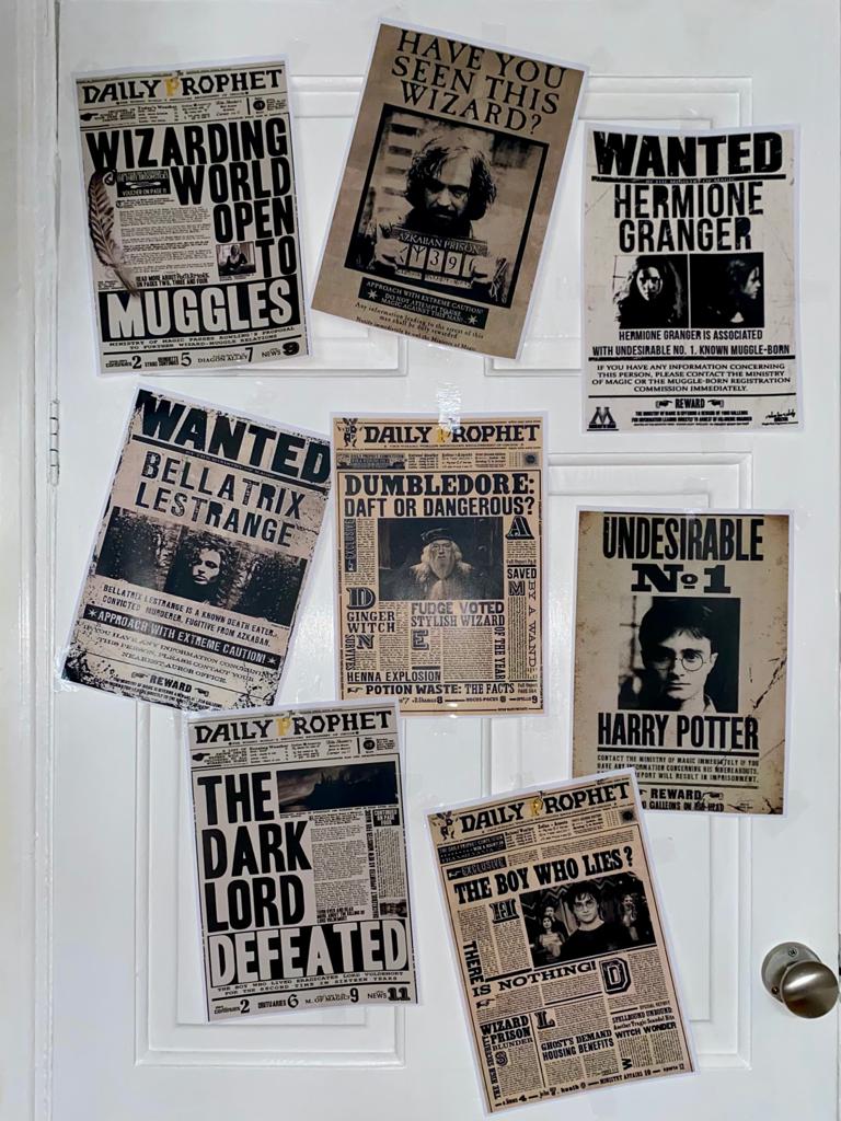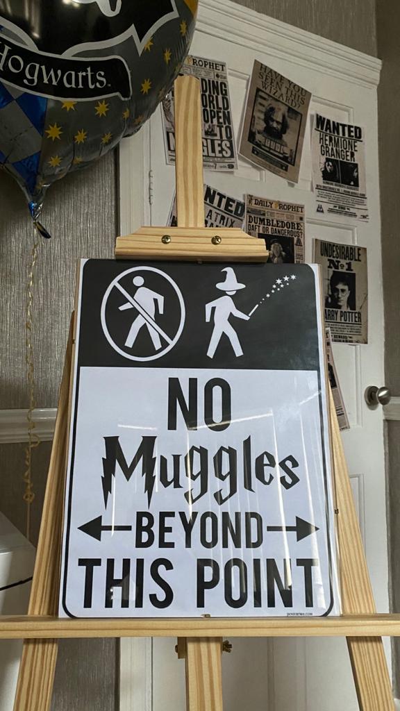 A little DIY was involved in creating some of the decorations. We printed off posters we found online that were a mixture of wanted signs and daily prophet articles, these were haphazardly stuck all over the door. We also printed a ‘No Muggles Allowed’ sign and put in a frame, which was displayed on an easel beside the dessert table.