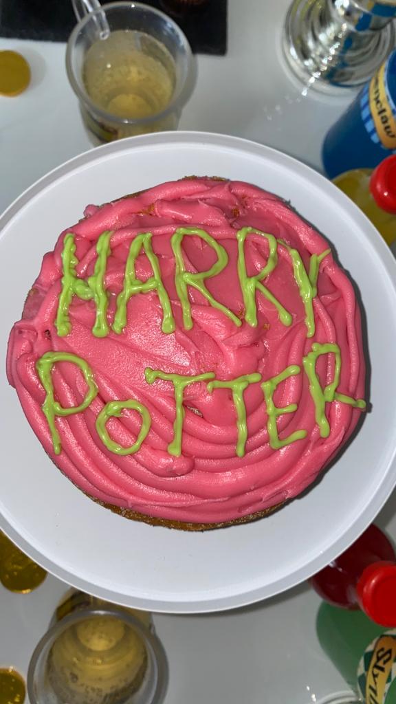 · Harry Potter Cake – real fans will recognise this cake from the movie! Luckily the cake itself is suppose to be imperfect so it wasn’t too difficult to recreate. We bought a Victoria sponge cake which we then decorated in pink icing and wrote ‘Harry Potter’ in green icing.