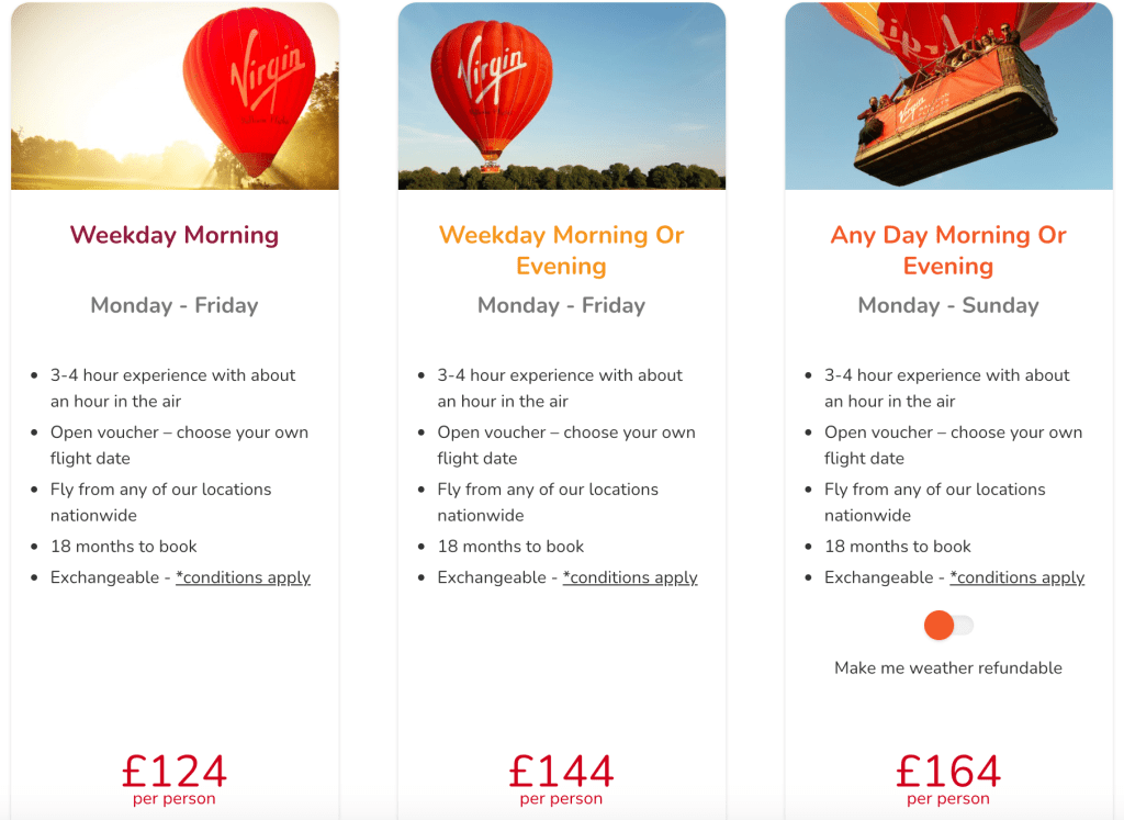 There are three different packages available where the price is dependant upon the time and day you choose to fly. The cheapest package is a morning flight on a weekday, which is the one we did and honestly it worked out great. Morning flights are awesome since the weather is usually optimum for flying. Once you have purchased the voucher you have 18 months to redeem it and book a flight.