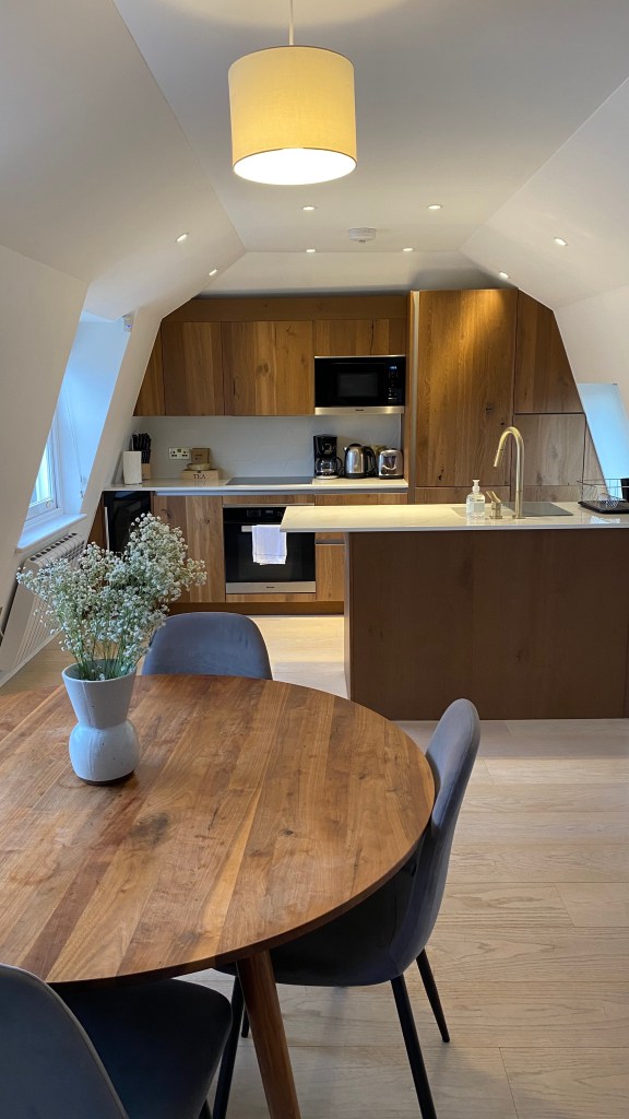 Our two floor apartment in Kensington was beautifully decorated and super spacious for us to set up all our things including birthday décor. The apartment had 2 bedrooms, 2 bathrooms and an open plan living room/ kitchen which suited the 4 of us perfectly. It was our first time staying at an Airbnb and we loved the easy convenience of it. We were given codes to enter the building and our apartment as well as having an online 24/7 concierge service to assist us with any issues. The location was also perfect since we were within walking distance to shops, restaurants and underground stations.