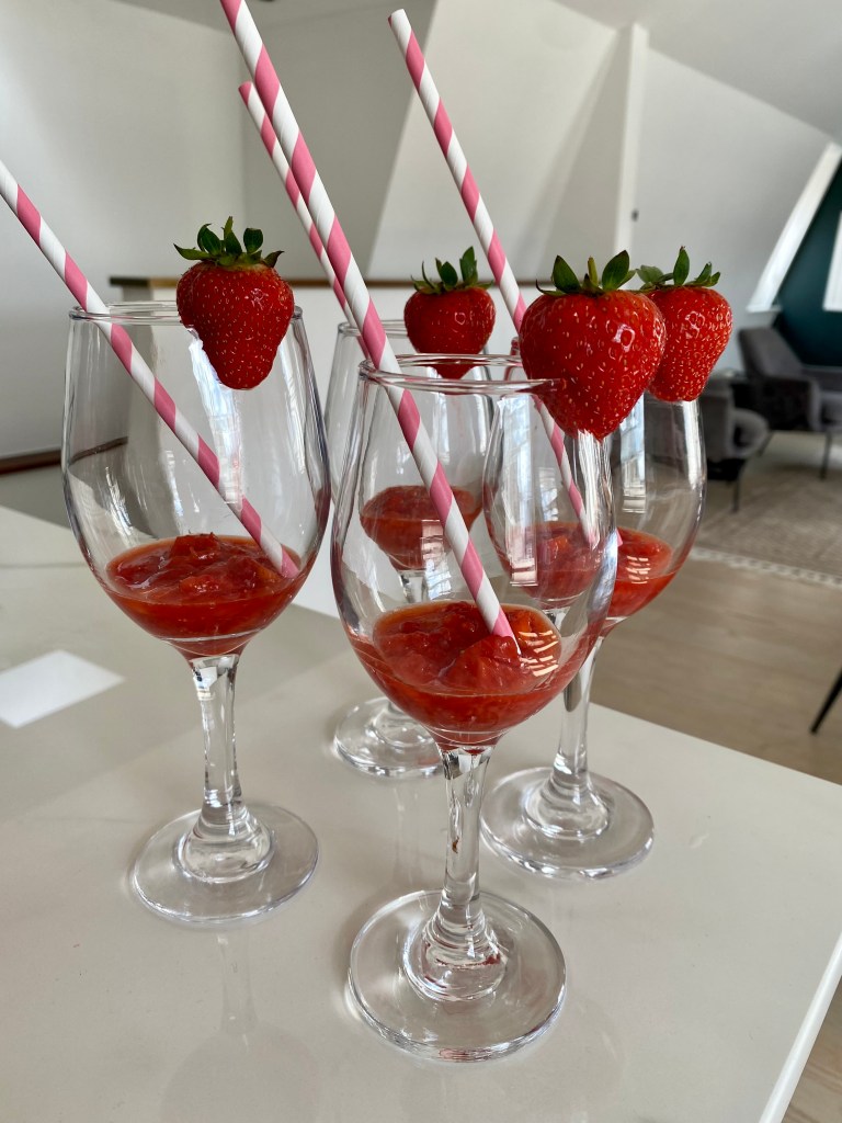 The drinks were super yummy and pretty easy to make, it consisted of mashed up strawberries and sugar topped up with fizzy pink Shloer. We would have added mint leaves, ice and lime if we had it so feel free to do so if you re-create.