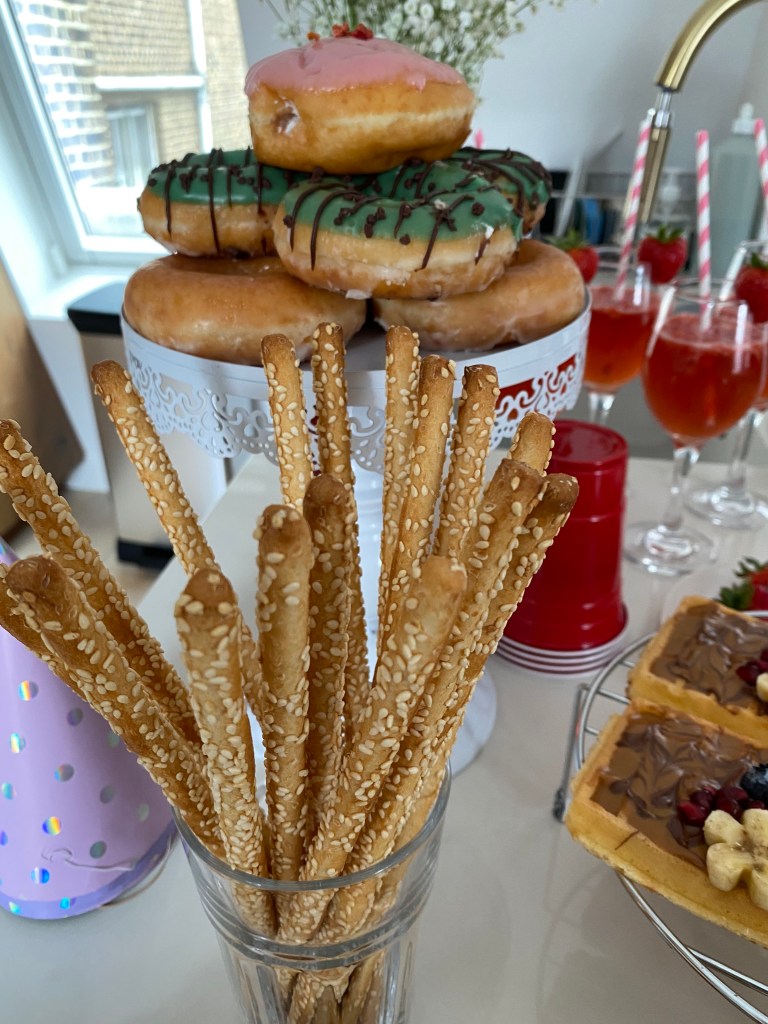 Although my sisters set this up themselves I’d like to think I had some input as I have done many similar situations in the past whilst bullying them into helping. The first tip is to choose where the food will go, my sisters decided to use the kitchen island in our Airbnb and it was just the right amount of space. The next step is to make a list of food you will be serving but keep in mind your space so you can plan the layout.