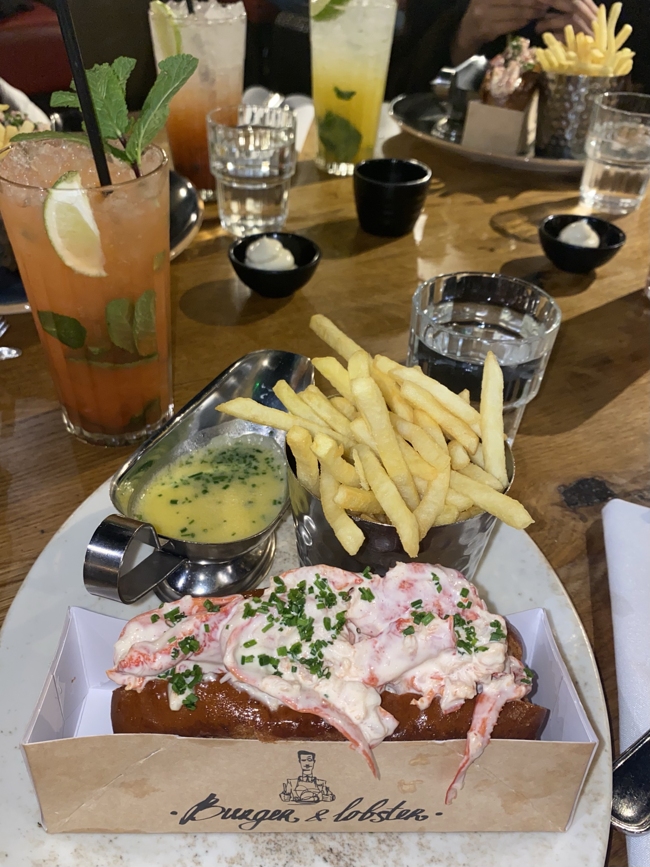 The four of us went for the classic ‘Lobster Roll with Fries’, we also ordered mocktails. The roll was buttered and toasted to perfection and packed full of lobster meat. The lobster itself was flavourful and tender smothered in the mayo sauce, it also came with a butter sauce for dipping. The fries were thin, crispy and perfectly salted. We were all stuffed by the end because of the super generous portions!