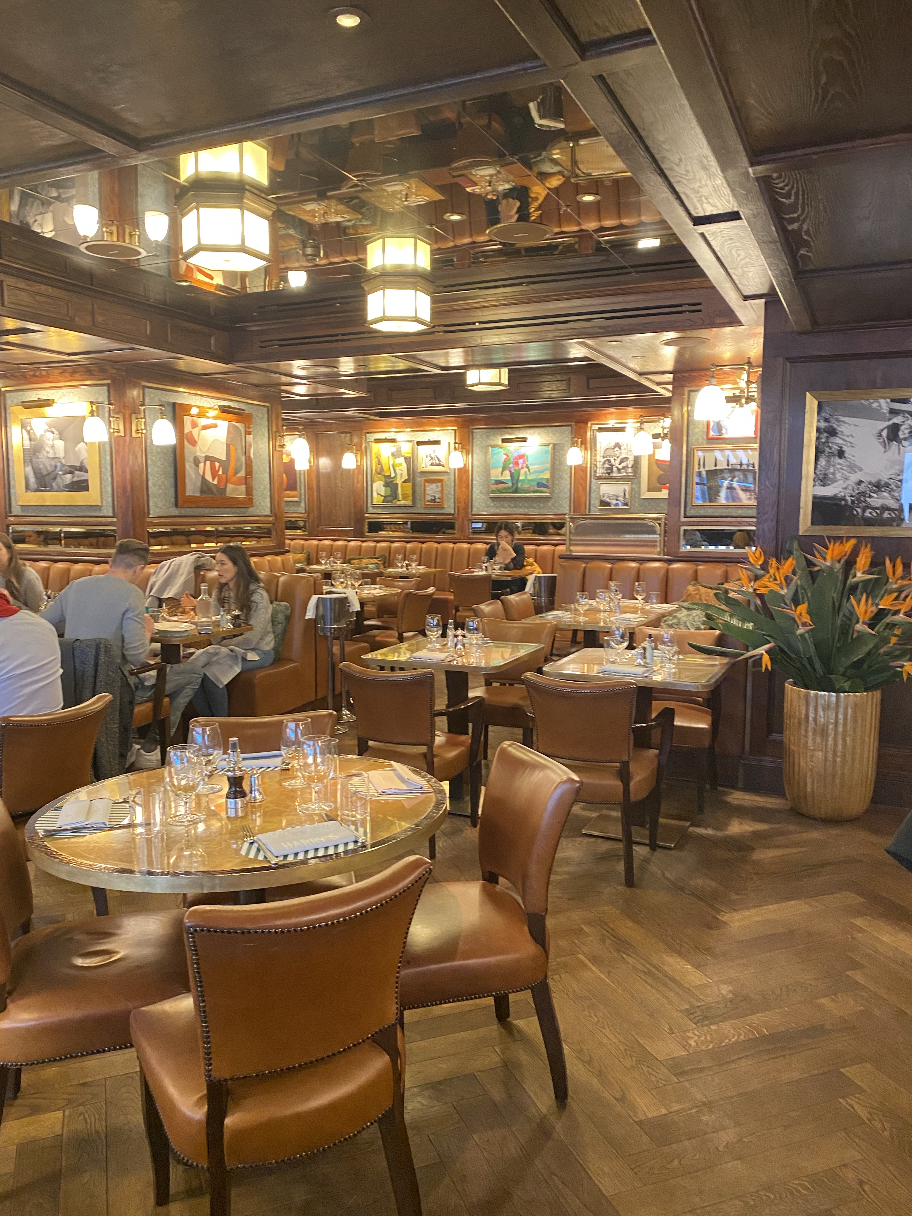 The restaurant itself is very aesthetic, the outdoor seating area has a lovely green and white striped canopy and the lush interior is rich with brown accents from the leather and wood making it super inviting.