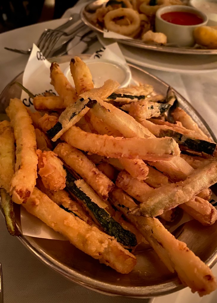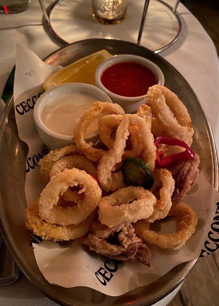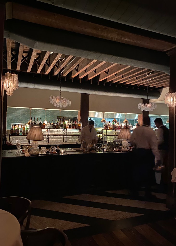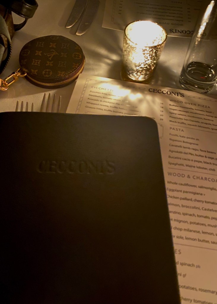 As soon as we arrived we were greeted by friendly staff who guided us through the restaurant to our table. The interior of Cecconi’s has an industrial feel to it with wooden floors, exposed beams across the ceiling and brick walls. This combined with circular white tables, chic seating at the bar and glowing chandeliers soften the overall look giving it a sophisticated feel.