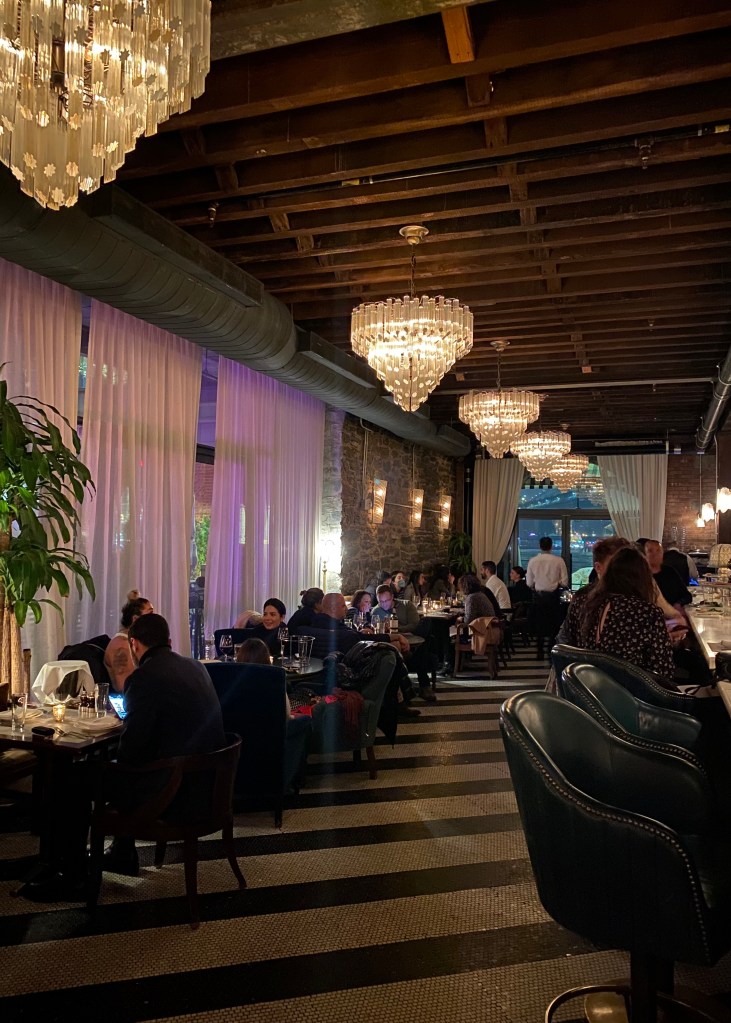 This was our mid-week dinner location however looking back I wish we had gone during the day instead. The restaurant is in a beautiful part of Dumbo Brooklyn right by the water with stunning views of the city so I would have preferred to enjoy it during the day. They have an outdoor seating area but due to poor weather that evening we had to sit inside.