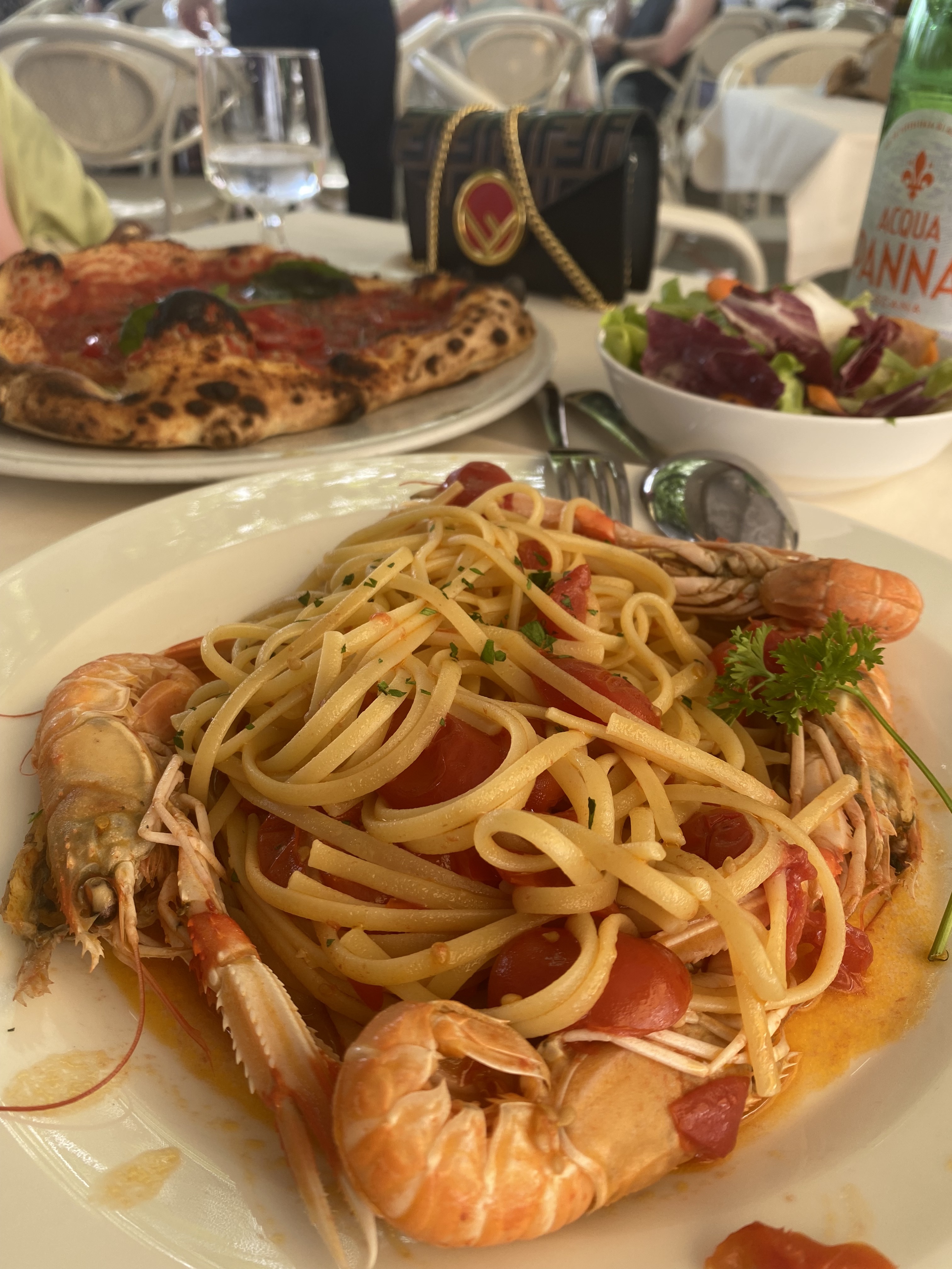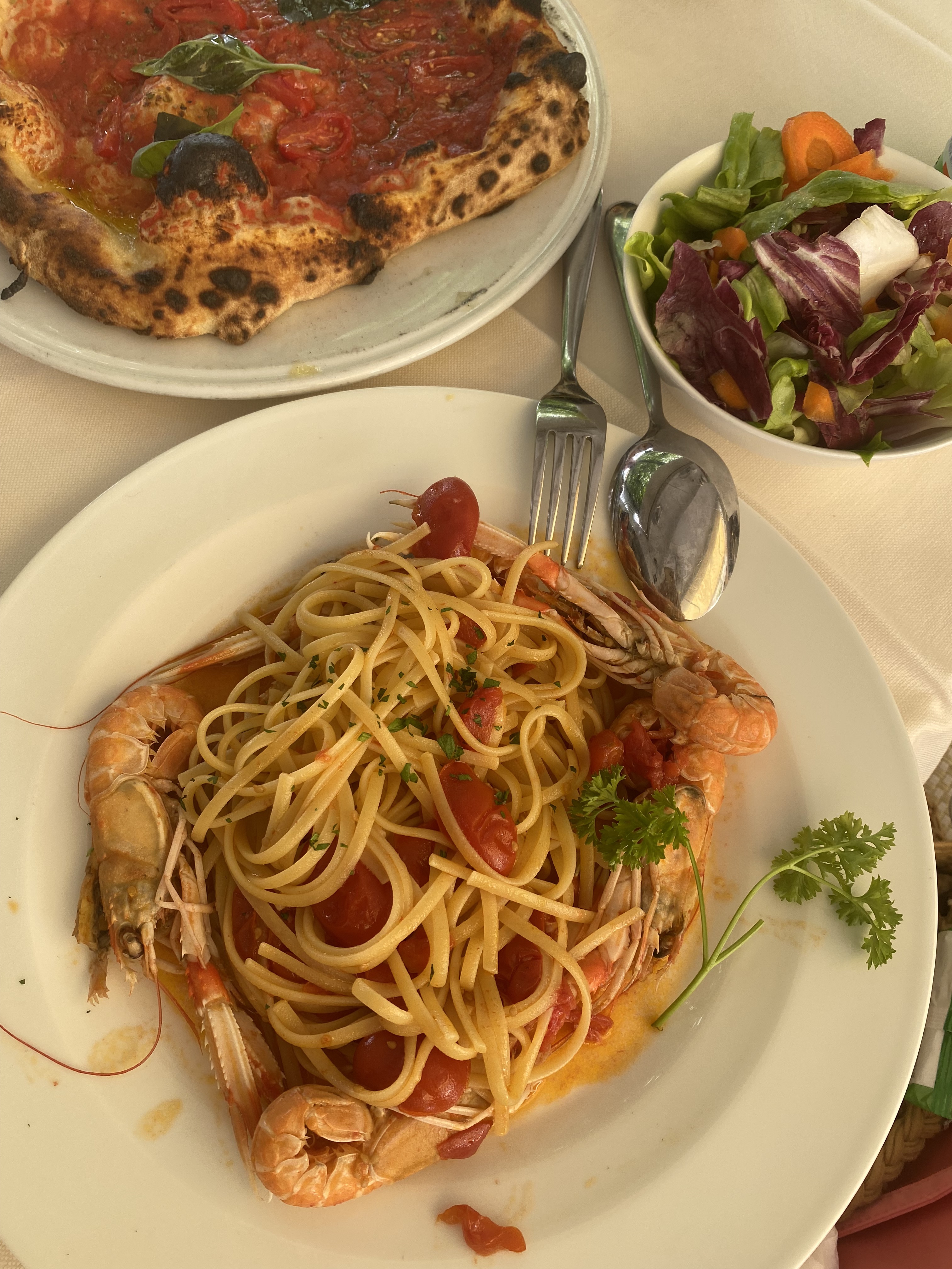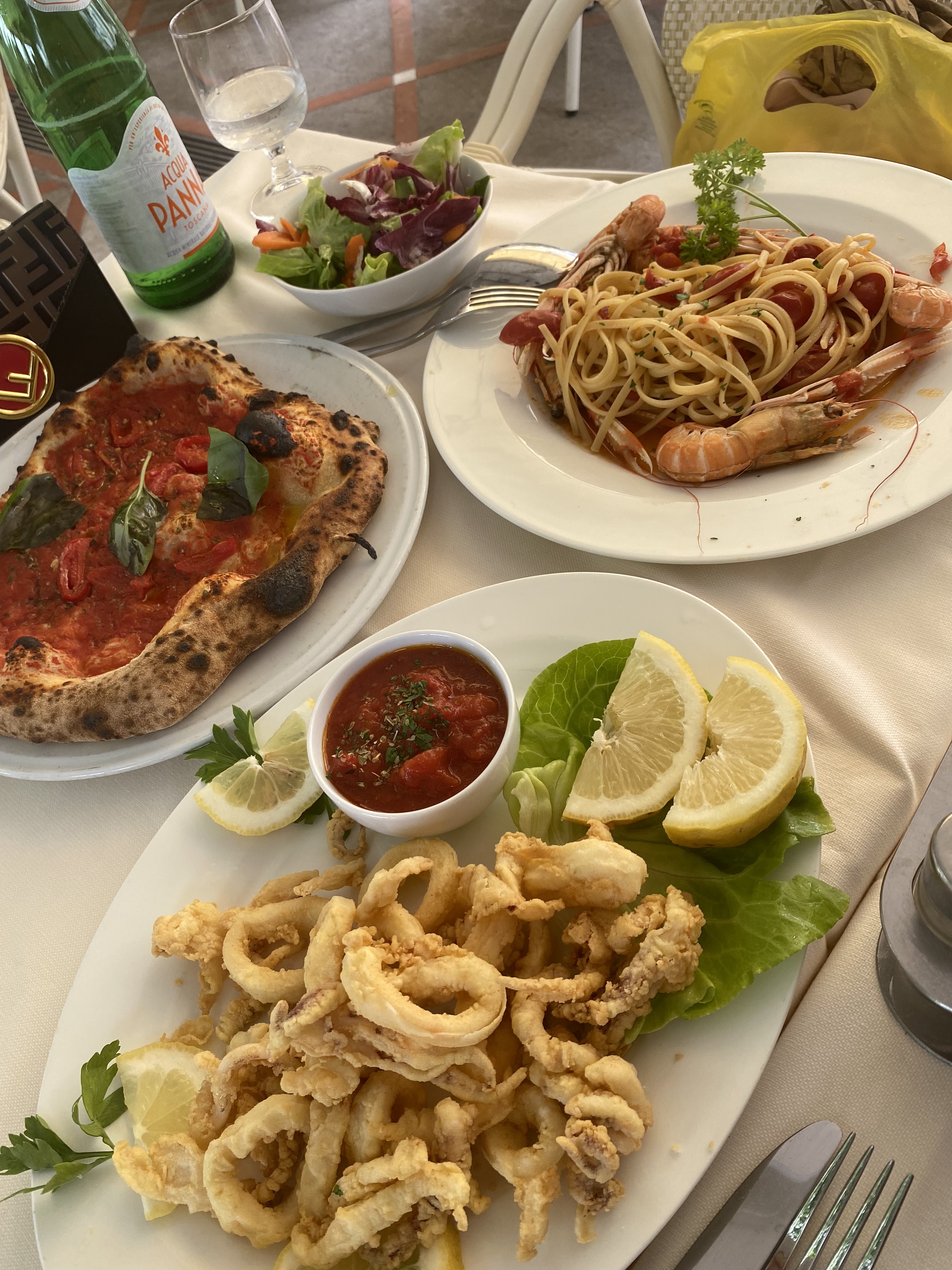 As soon as we arrived at the port in Positano the first thing we did was look for a gelateria! We found a lovely one right by the water where both the gelato and the service was amazing. The place was called Ristorante Covo Dei Saraceni be sure to check it out if you visit and make sure to try their fresh lemon sorbet which is served inside a carved out lemon! After a morning spent in the hot sun exploring the sights we were famished and decided to take a break for some lunch. The options were endless however we settled on a spot called Ristorante La Pergola Positano where we had some delicious seafood pasta.