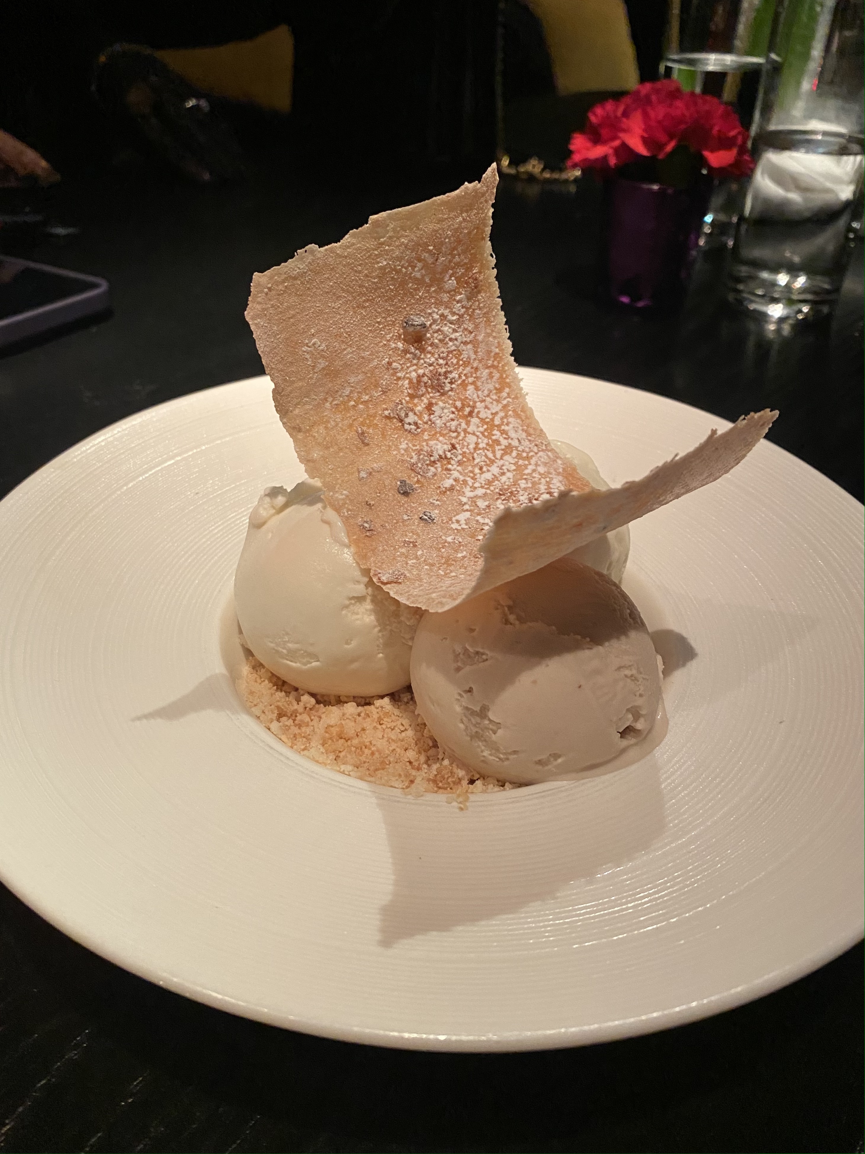 The restaurant is located in central London behind a random narrow street, it took us a minute to find it but once inside you’re transported to a chic, low lit dining area. From the scents, sounds and spectacular decor it is a feast for the eyes before you even set sight on the food. It’s a pretty big dining space but it feels quite intimate due to the dim lighting and wooden separators between sections.
