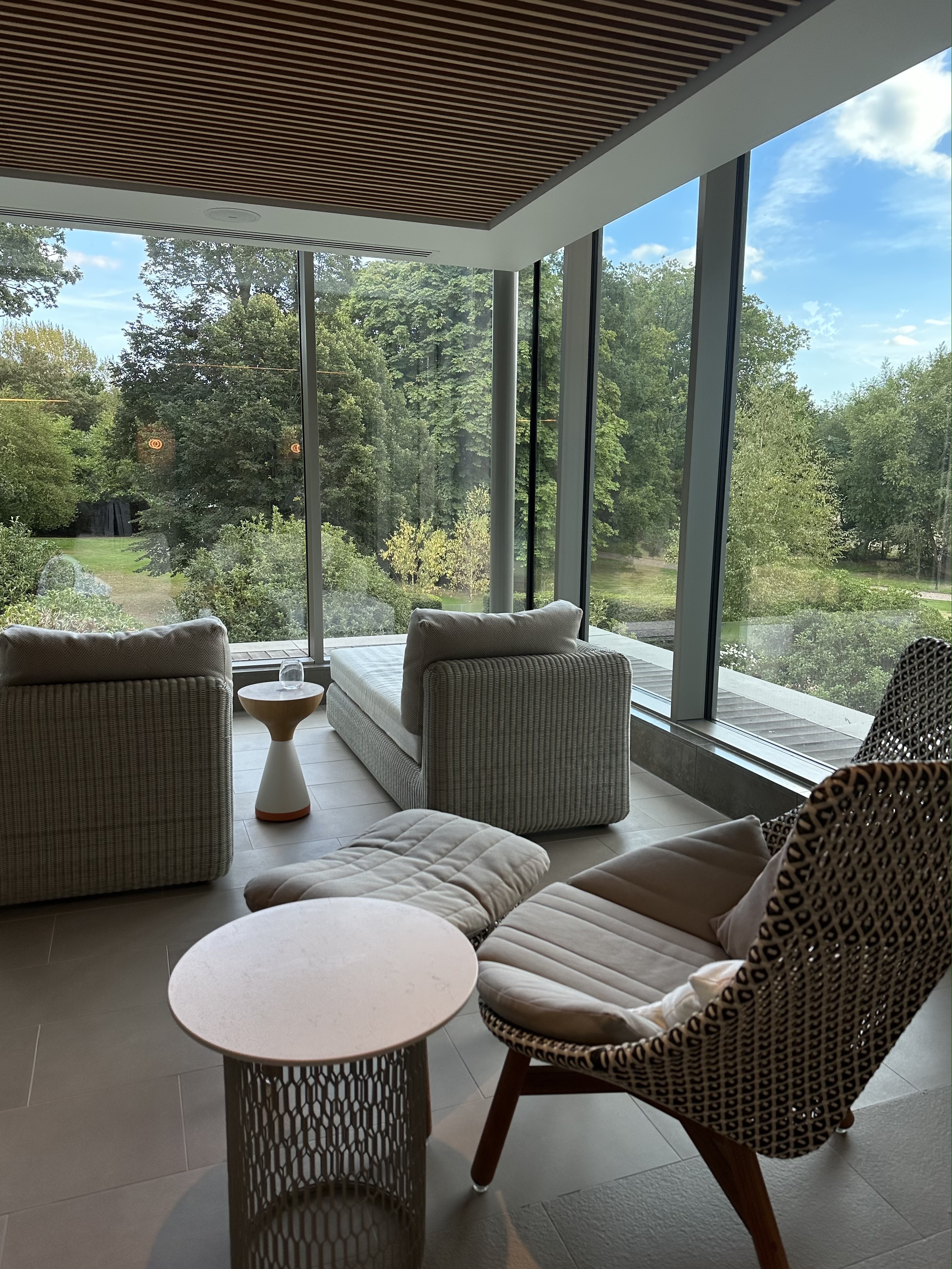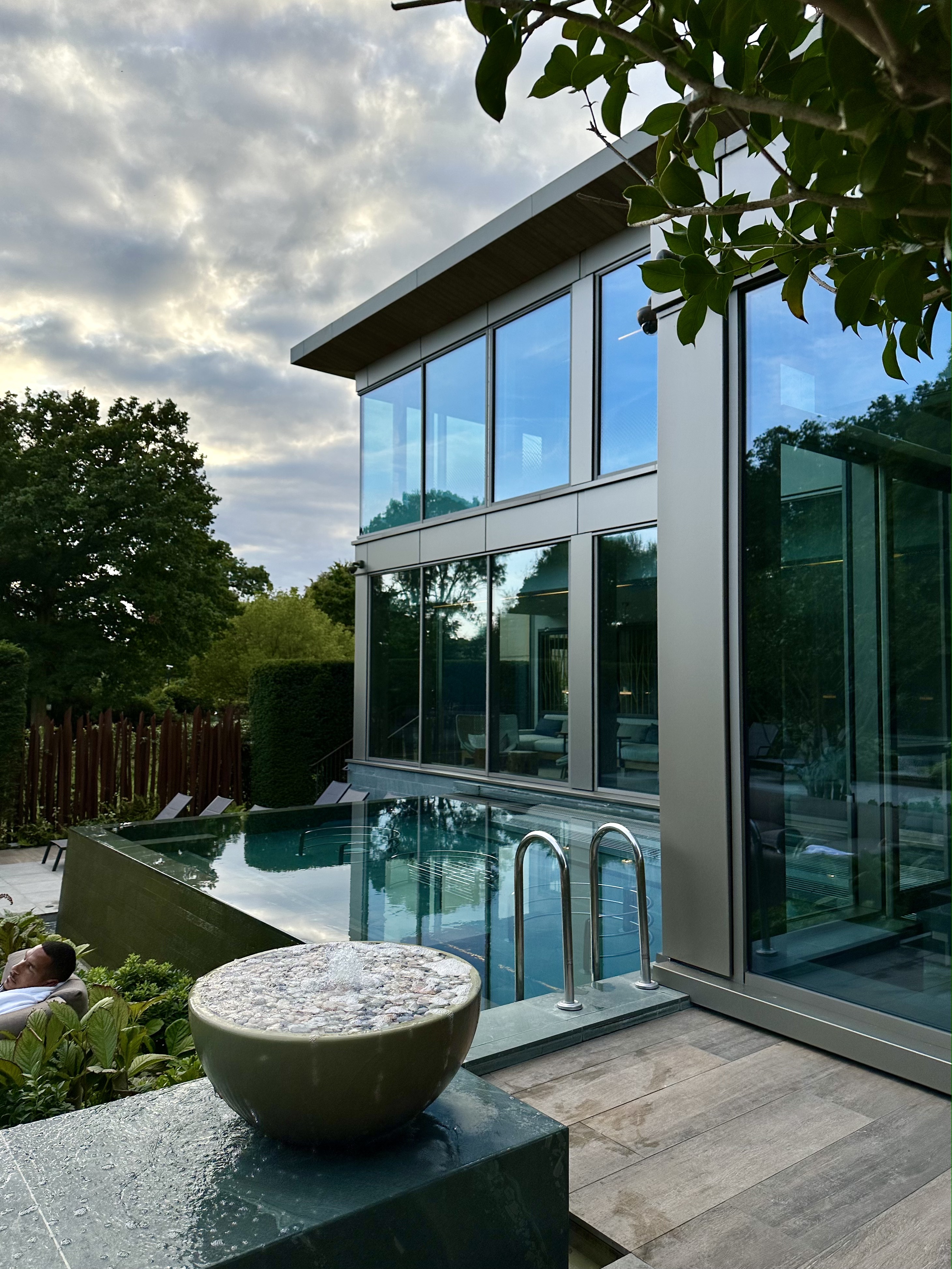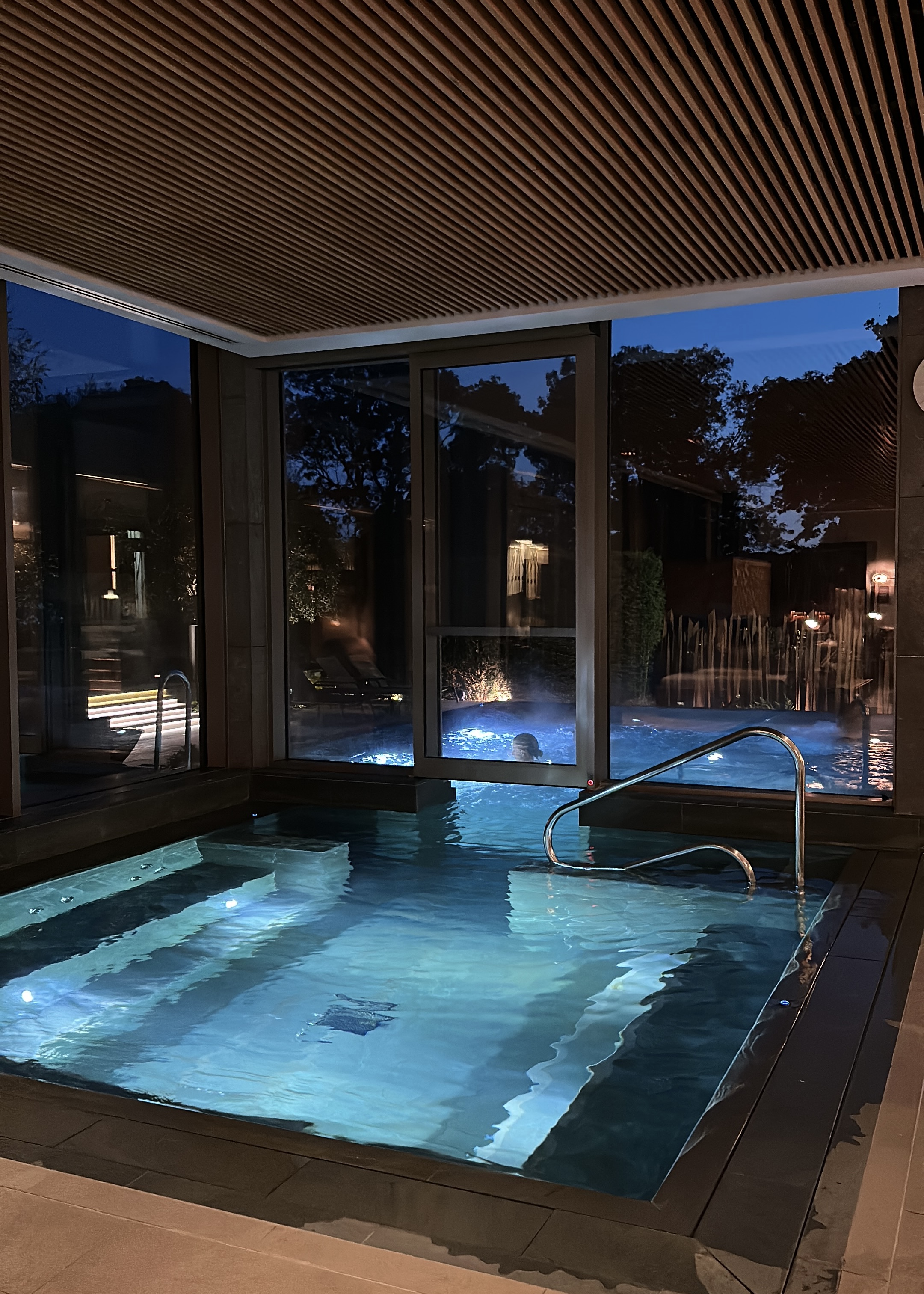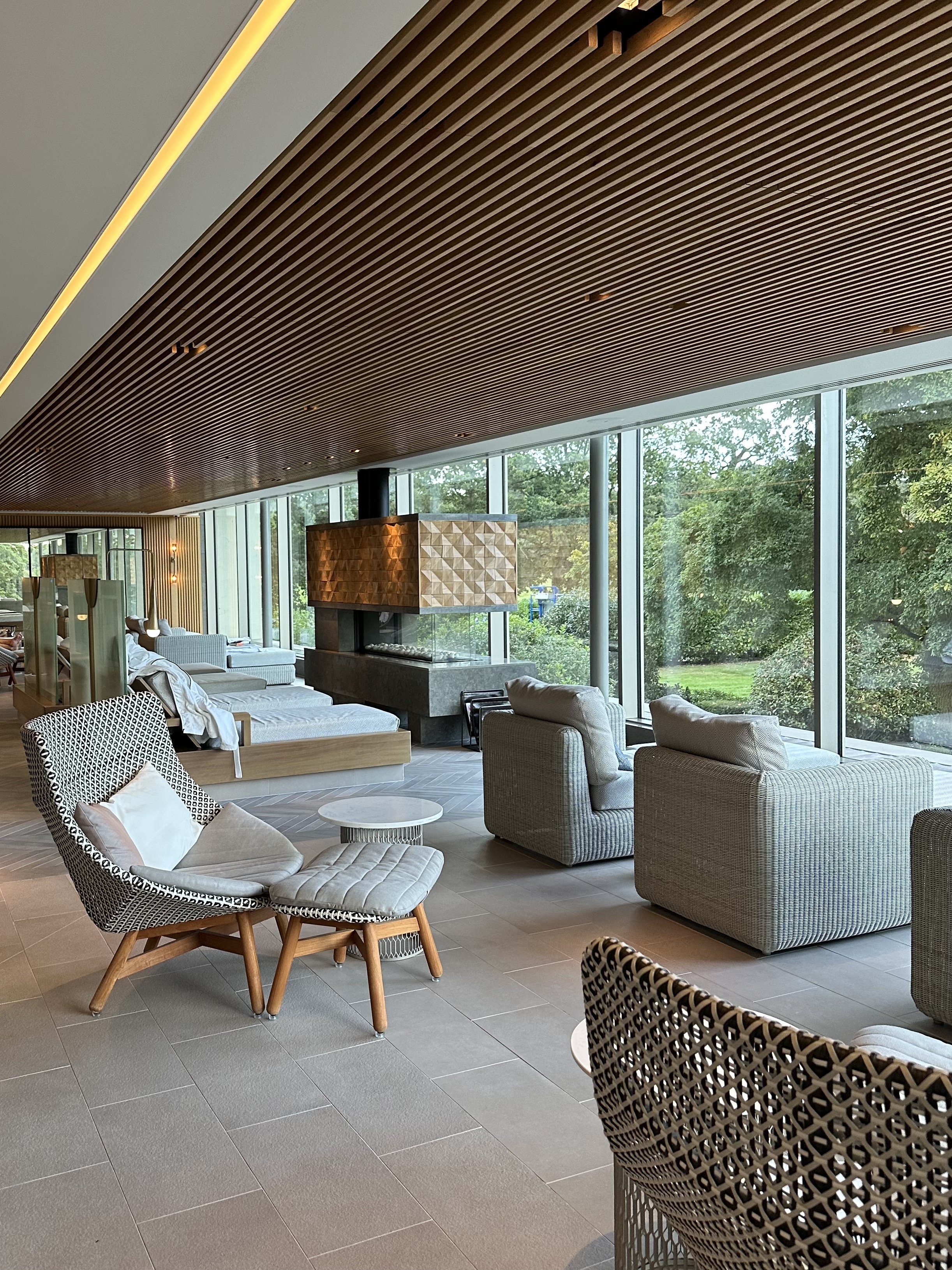 This spa is located at Sopwell House Hotel in St Albans and pretty easy to get to, just off the M1. They have a number of packages available where you can add in a variety of treatments as well as overnight stays at the hotel. We went for a day break and our package was called ‘Evening Retreat’. It included welcome drinks, use of The Club at Cottonmill facilities (4pm – close) a cold platter supper in the sitting room and a glass of fizz. We enjoyed the exclusive Club at Cottonmill facilities, including indoor/outdoor hydropool, whisper room, deep relaxation room, experience showers and beautiful spa gardens plus much more. For comfort we were also provided a robe and flip-flops on arrival.