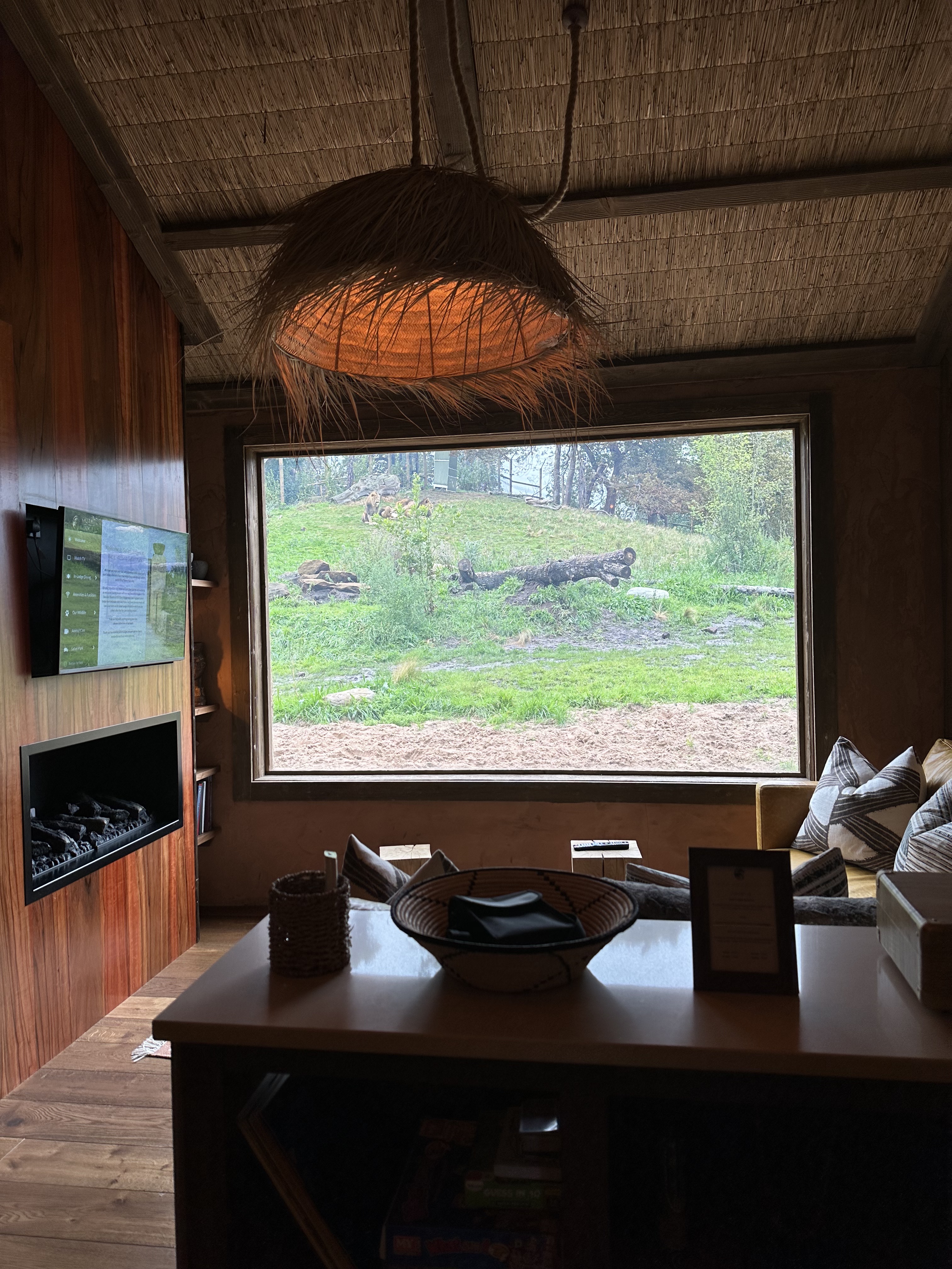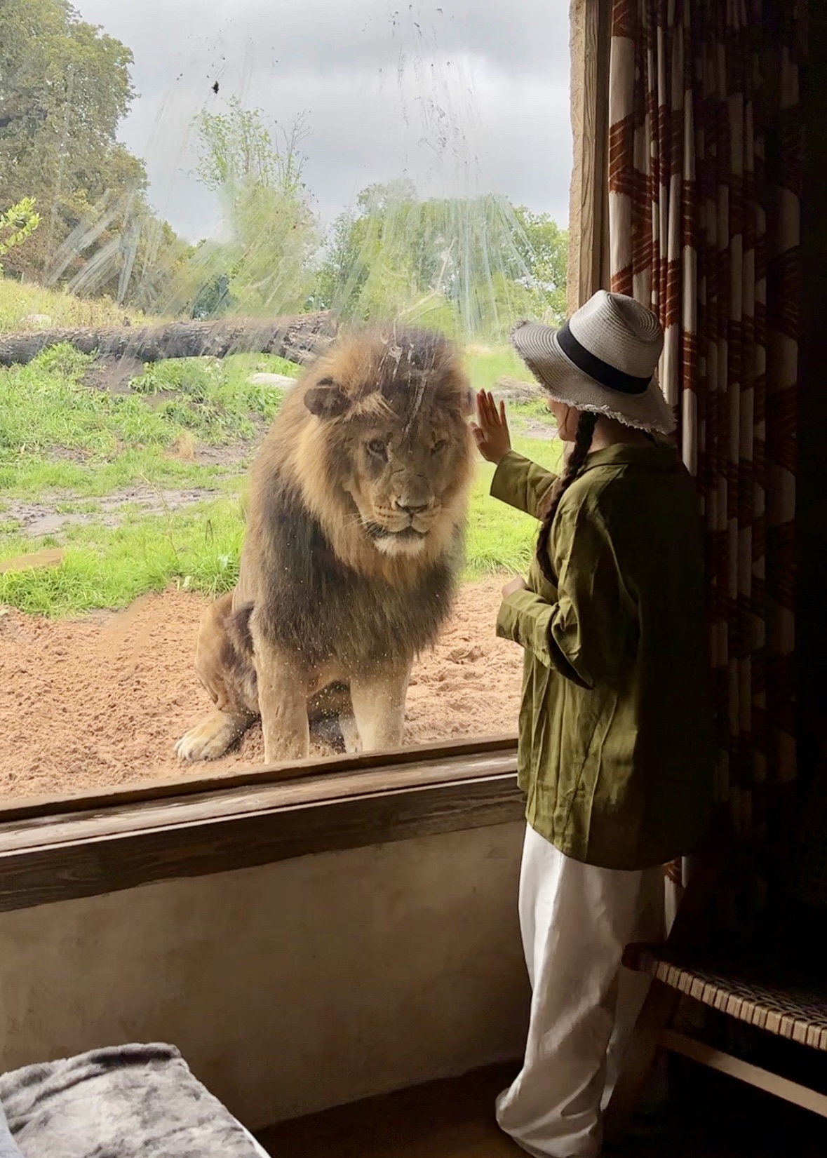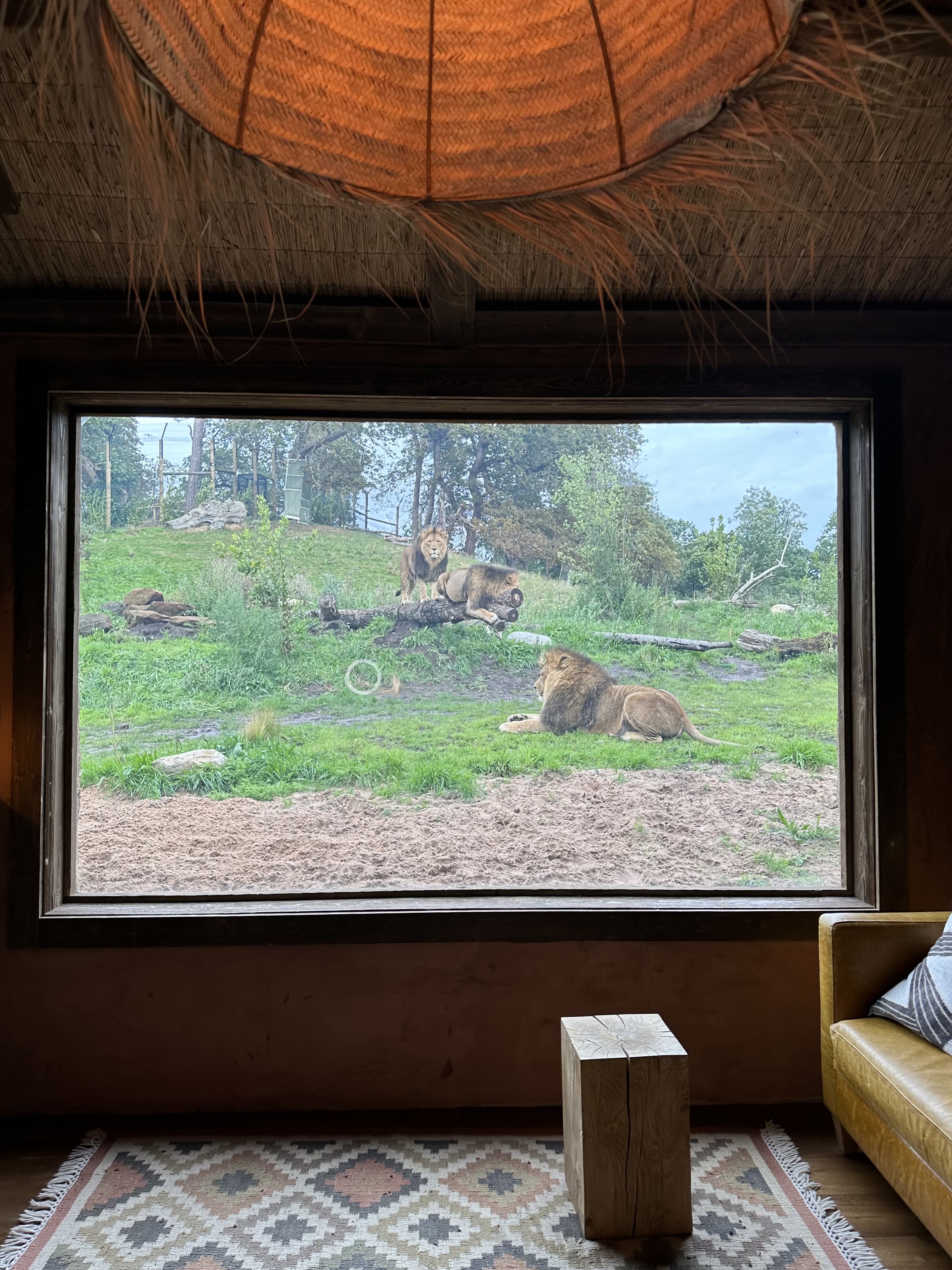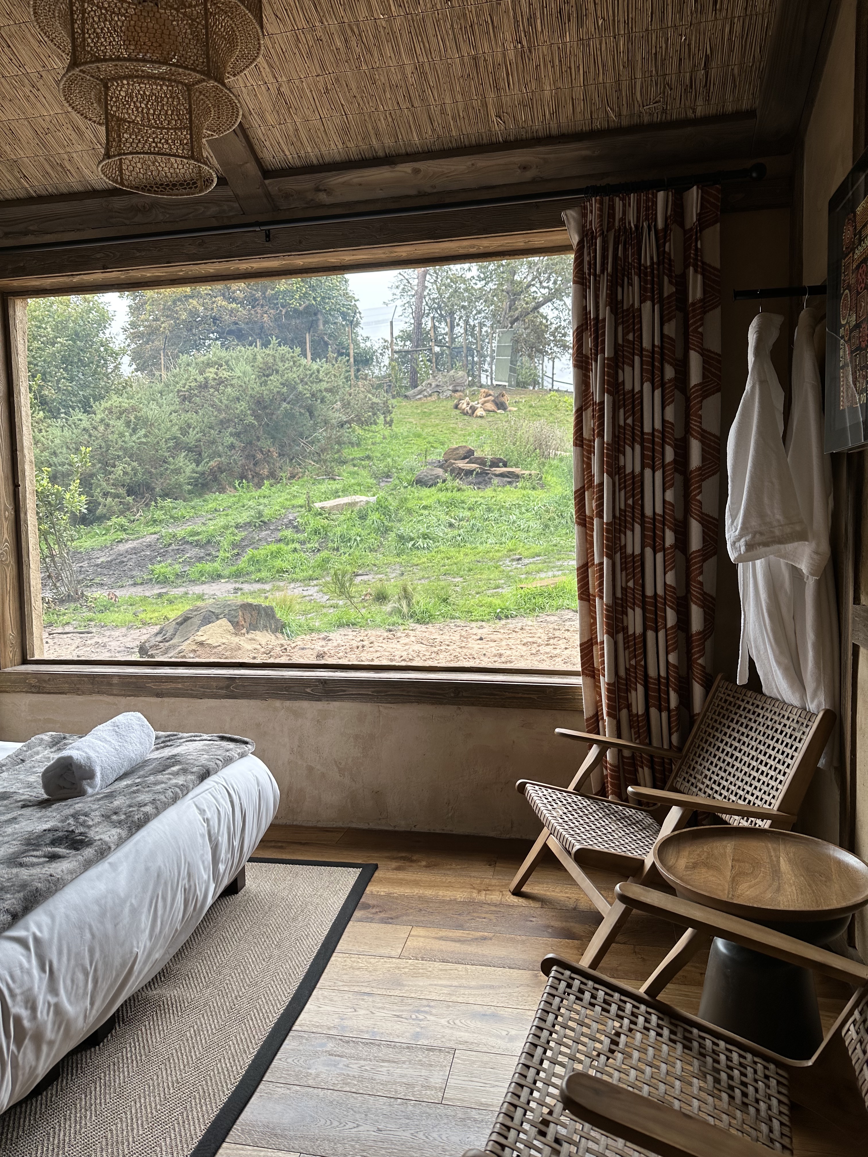They have 8 different lodges and the animals you can pick from are; Lions, Rhinos, Red Pandas, Wild Dogs, Hippos, Giraffes, Cheetahs, Tigers and Elephants. We opted for the Lion lodge as it was available and seemed like the best one for us. There are 4 Lion lodges within the Lion section which are authentically themed and can sleep up to six guests. Panoramic views of the lions’ new habitat can be witnessed through the large windows in bedrooms and living areas, meaning you can eat, sleep and relax just a whisker away from these magnificent cats. In one bedroom, you will find a king-sized bed. In the other, there are twin single beds with a king-sized bunk bed above, perfect for young adults or children.
