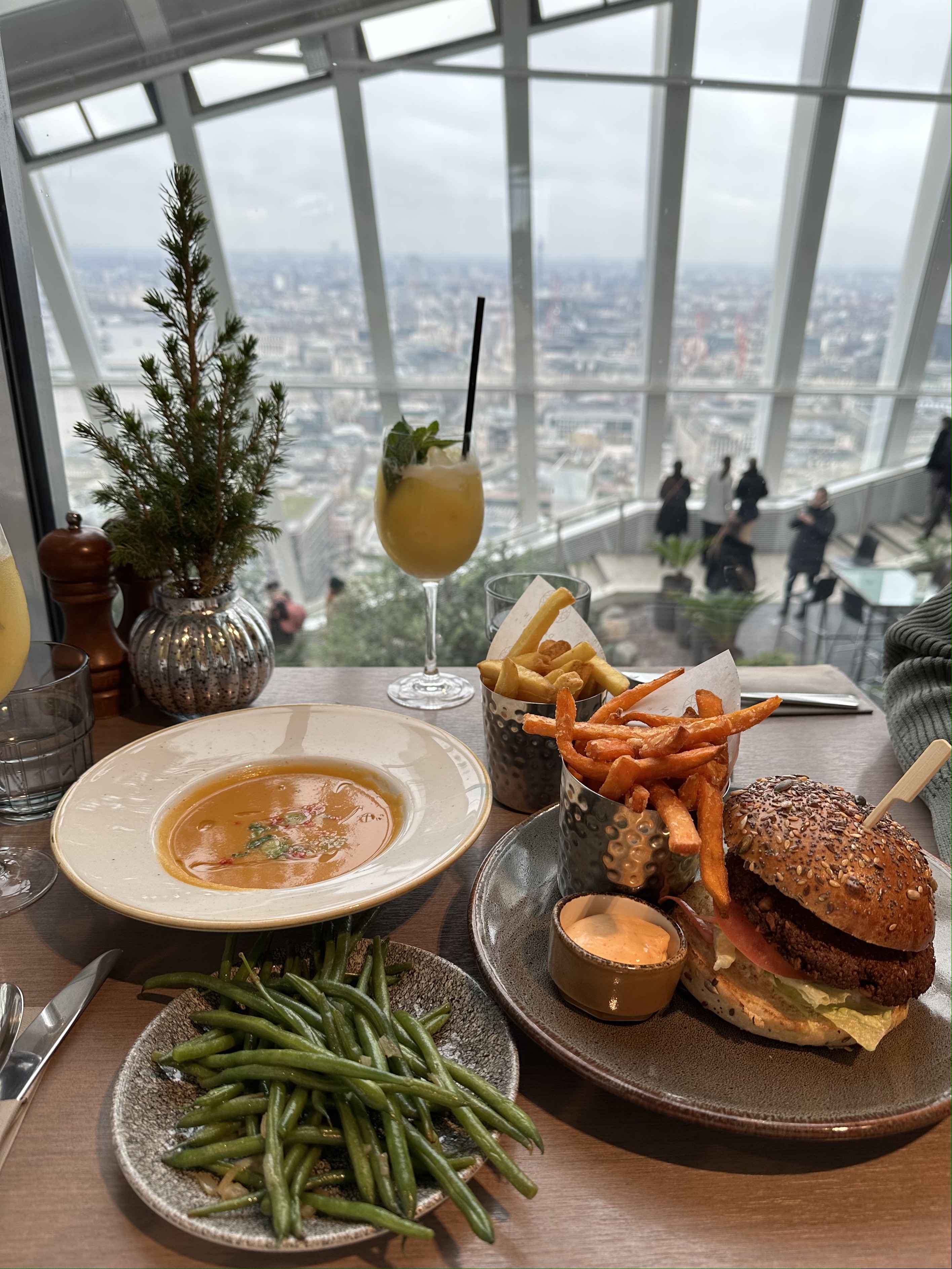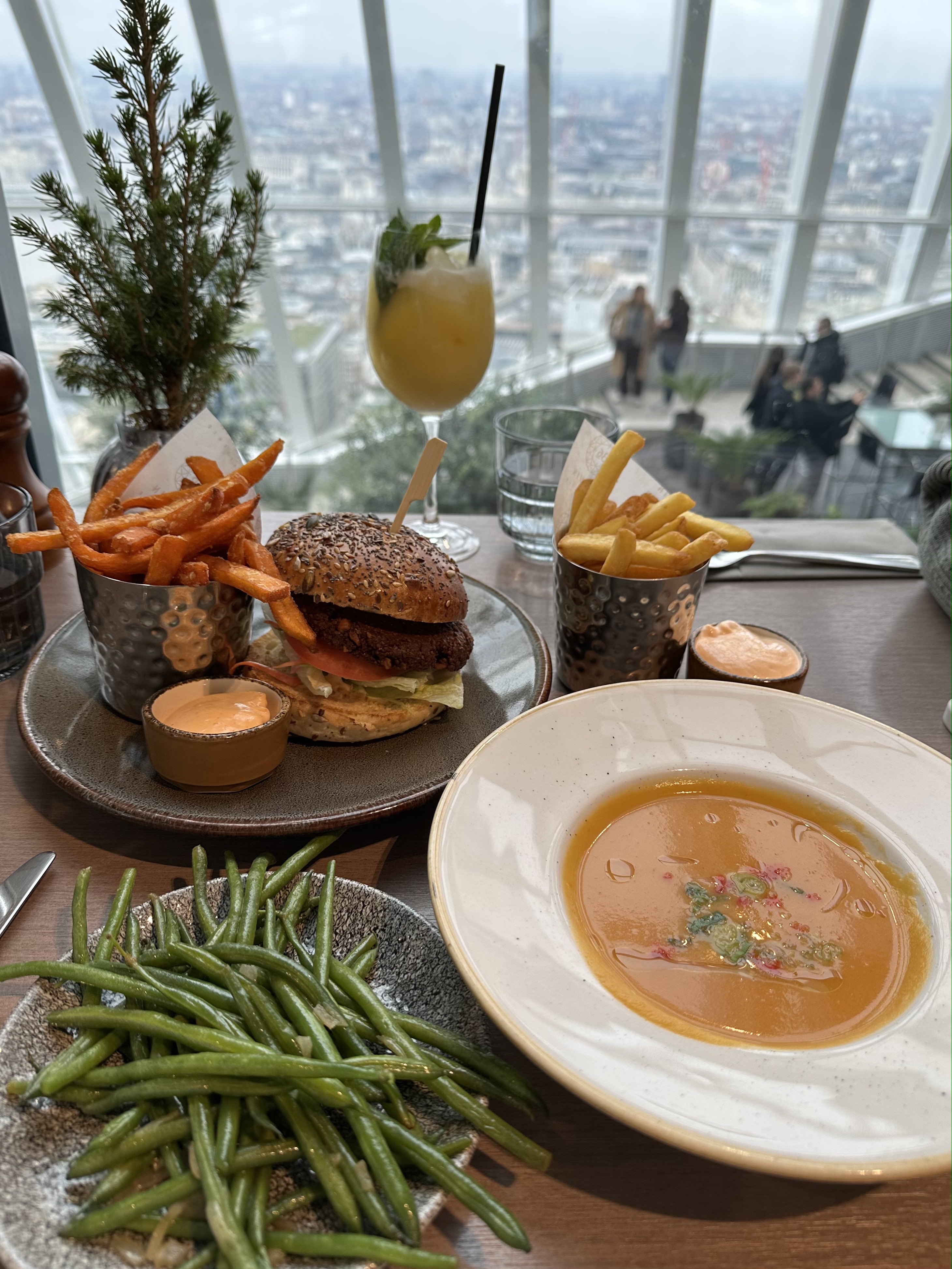 Darwins is London’s highest rooftop brasserie overlooking the Thames on Level 36. It is a lively all-day dining location inspired by the very best of British. They have an extensive menu and serve breakfast, brunch, lunch and dinner! The location itself is stunning coupled with the food it is a feast for the senses. Check out what we ordered below: